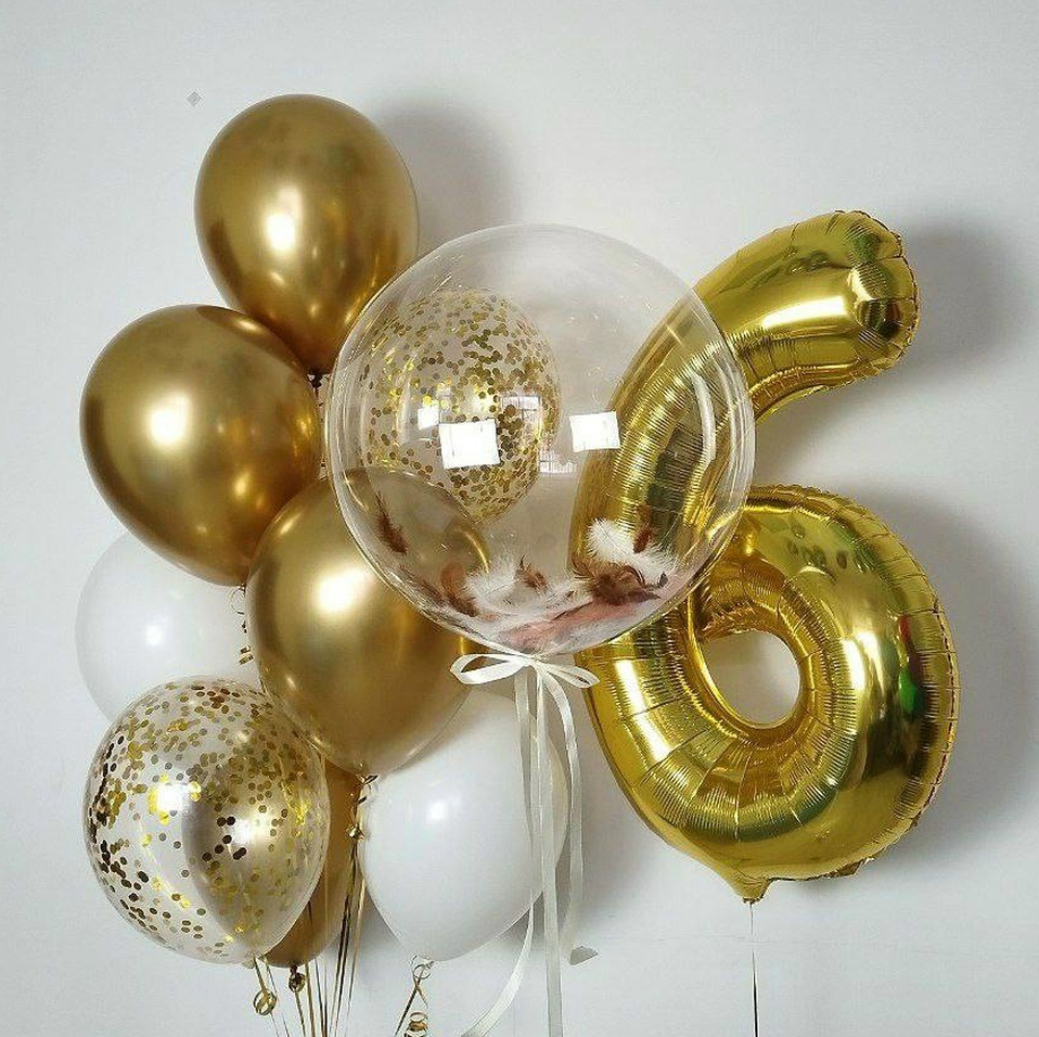 Связка из: 4 шара хром, 3 цветных шара, 3 шара с конфетти, грузик.