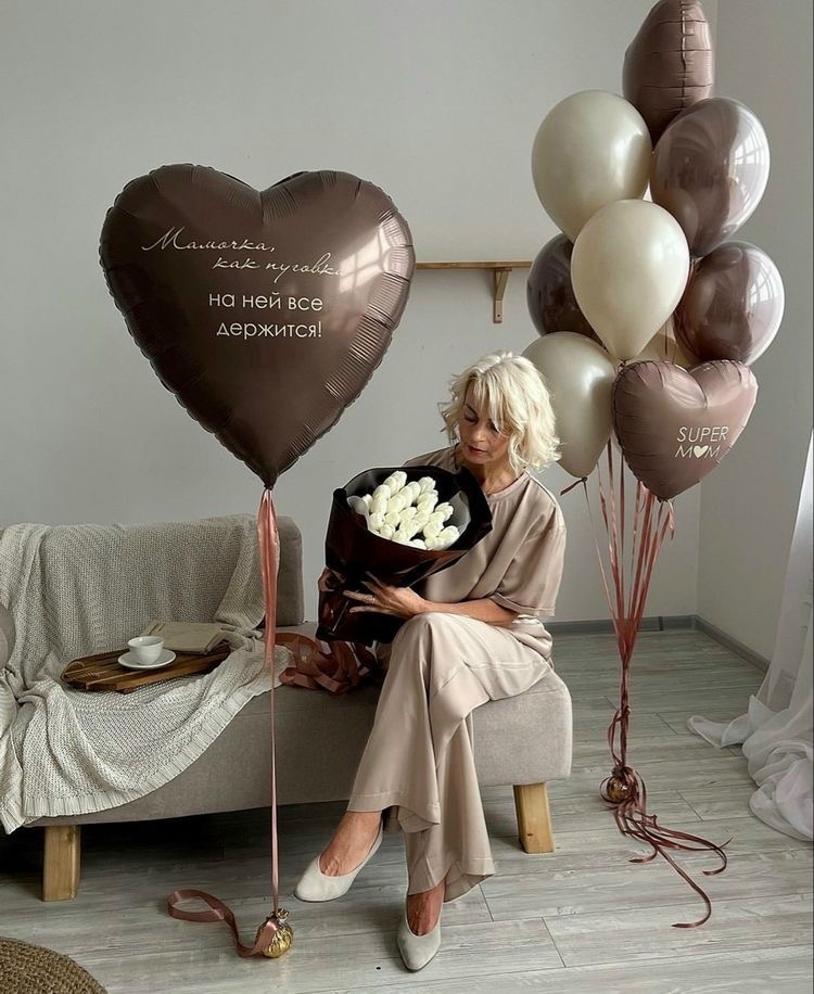 Сердце с надписью. Фонтан из 6 цветных Шаров, 3 стеклянных шара, 2 сердце, 1 надпись, грузик.