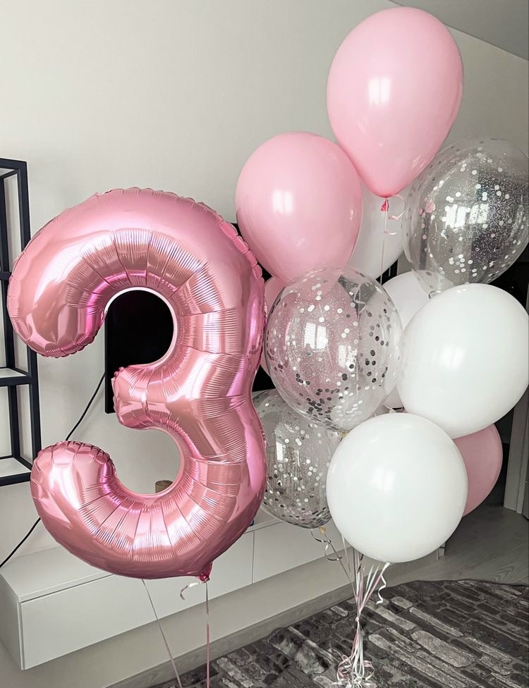 Цифра, грузик. Связка из 9 цветных шара, 3 шара с конфетти, грузик.