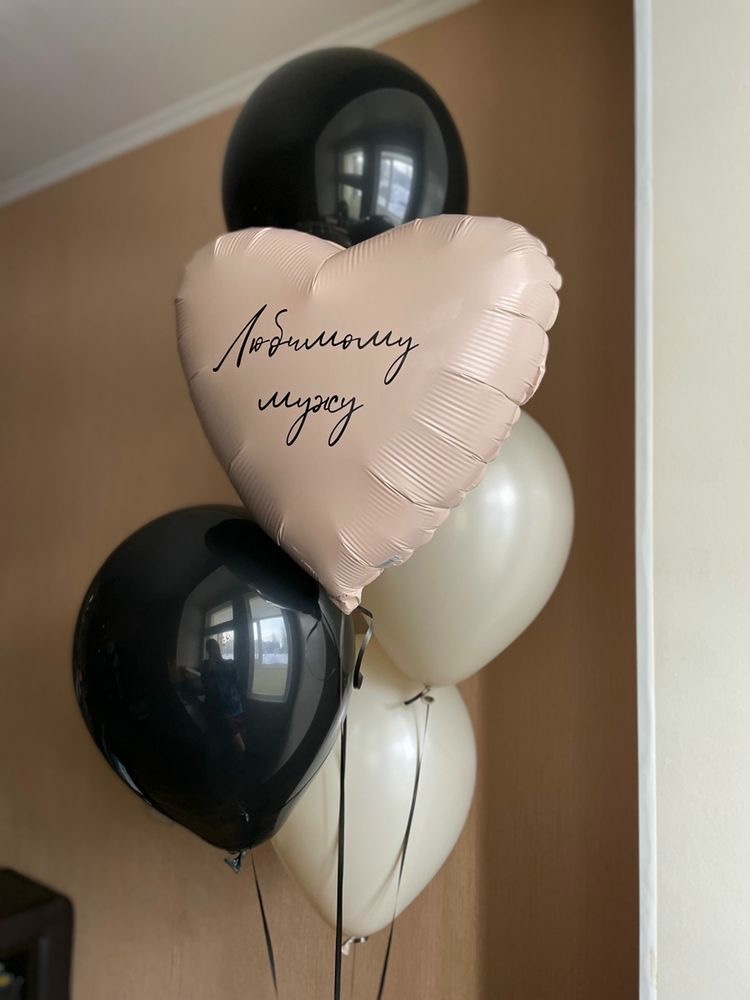 Связка из 4 цветных Шаров, 1 сердце с надписью, грузик.