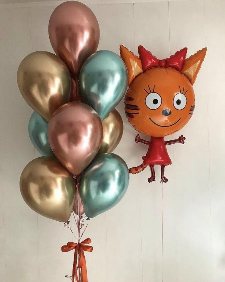 Связка из 10 Шаров хром,грузик. Котик,грузик.
