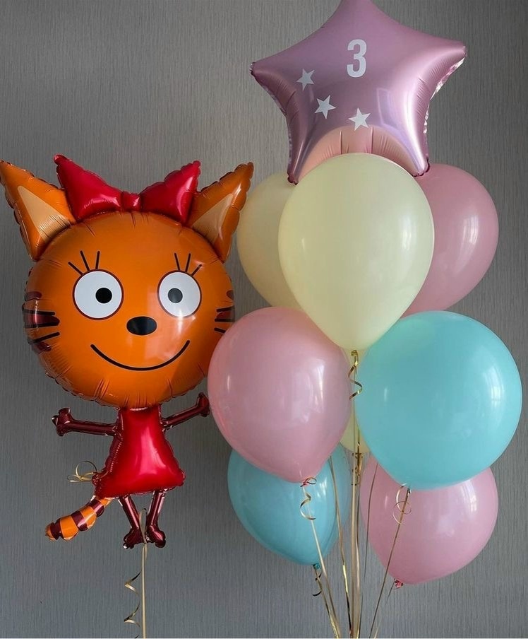 Котик, грузик. Связка из 8 Шаров, звезда с надписью, грузик.