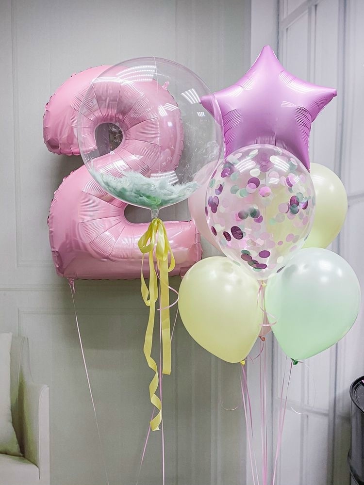 Связка из 1 звезды, 5 цветных Шаров, 1шар с конфетти( могут быть небольшие отличия в конфетти).