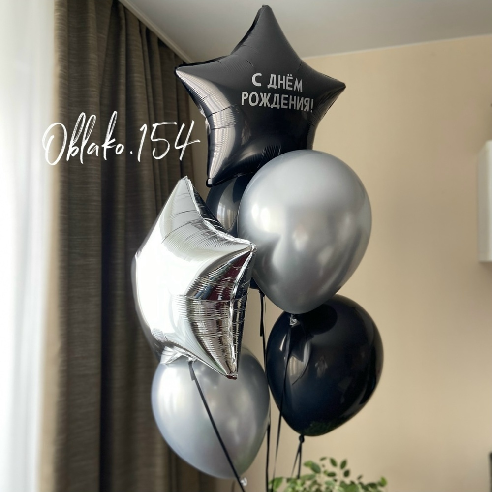 В набор входит: 2 цветных шара 2 шара хром 2 звезды 1 надпись Грузик (Шары на атласных лентах)
