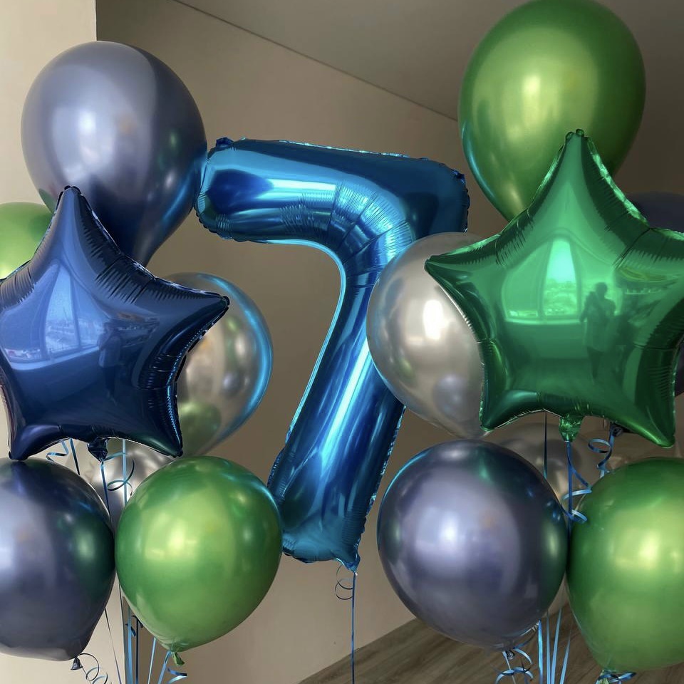 В набор входит 2 связки из: 6 Шаров хром, 1 звезды. Цифра (на выбор)⭐️