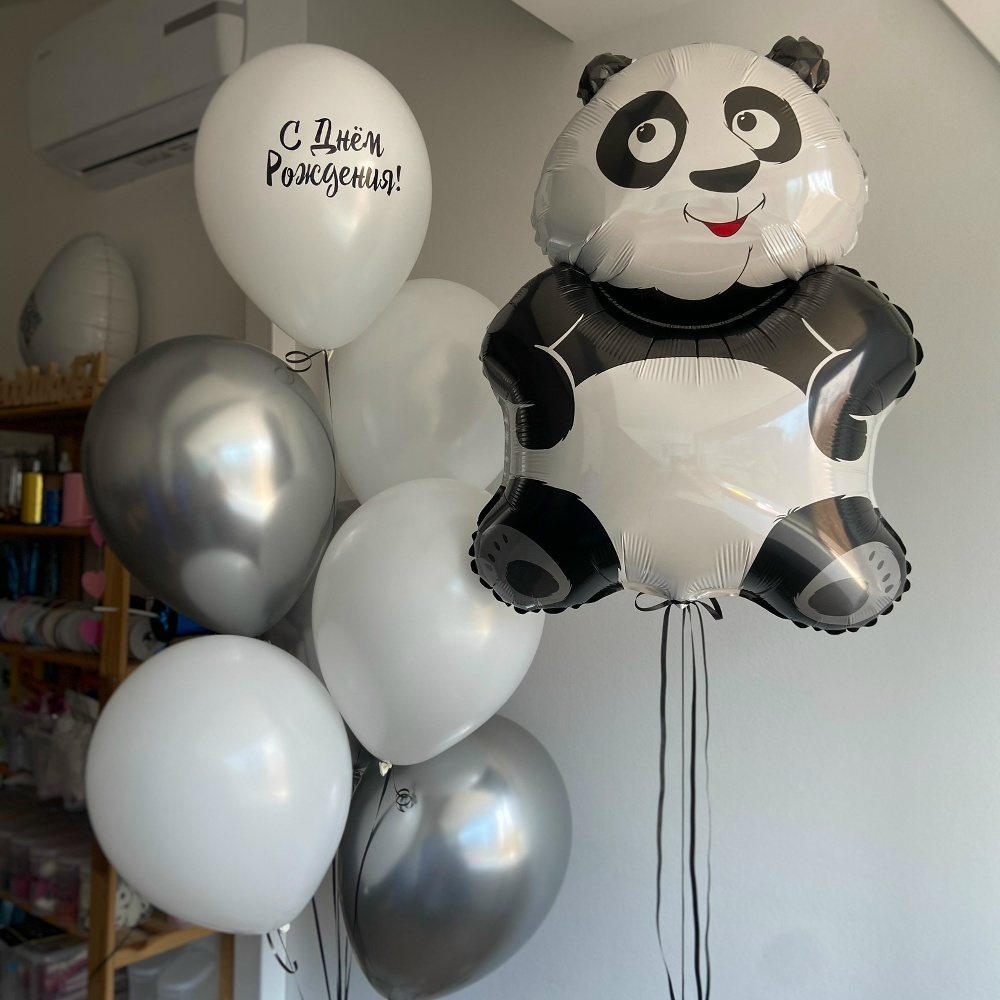 В набор входит: Связка из 4 обычных Шаров, 3 Шаров хром, надпись на одном шаре(индивидуальная). Панда