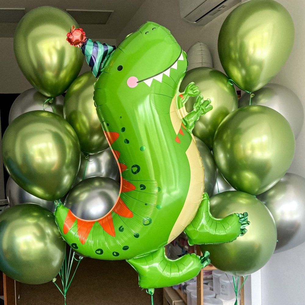 В набор входит : 2 связки по 8 Шаров хром. Динозавр
