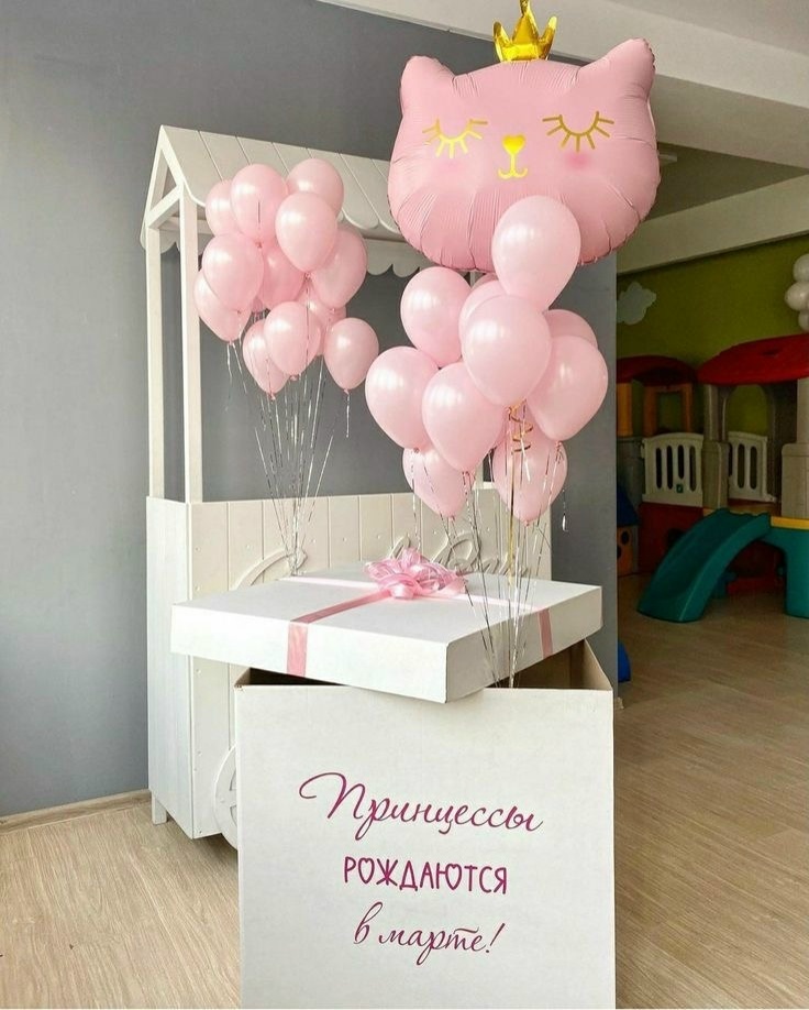 В набор входит: Коробка с надписью 30 мини Шаров в потолок Фигура Кошечки💞