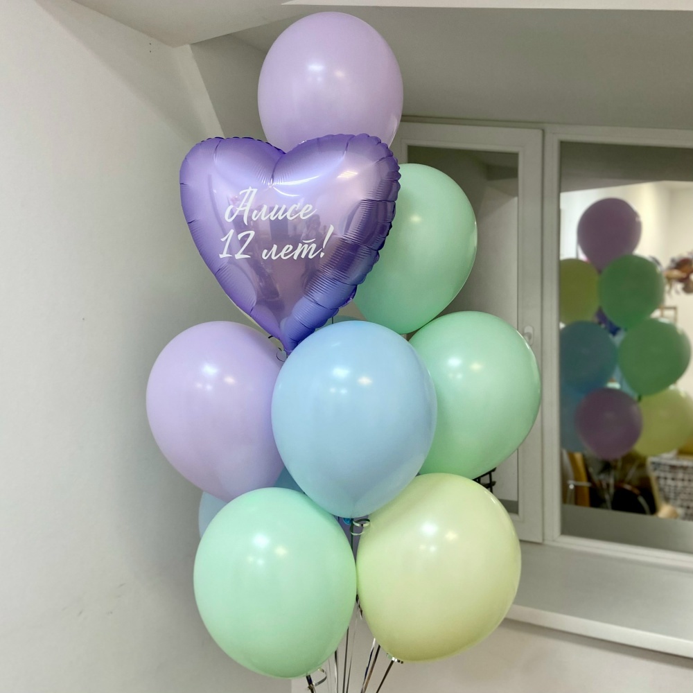 В набор входит: Фонтан из 11 Шаров макарунс и сердце с надписью (индивидуальной)