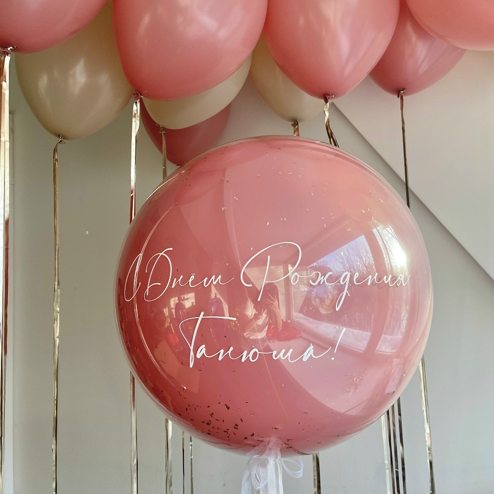 В набор входит: Стеклянный шар гигант с надписью И 20 Шаров в потолок с дождиком