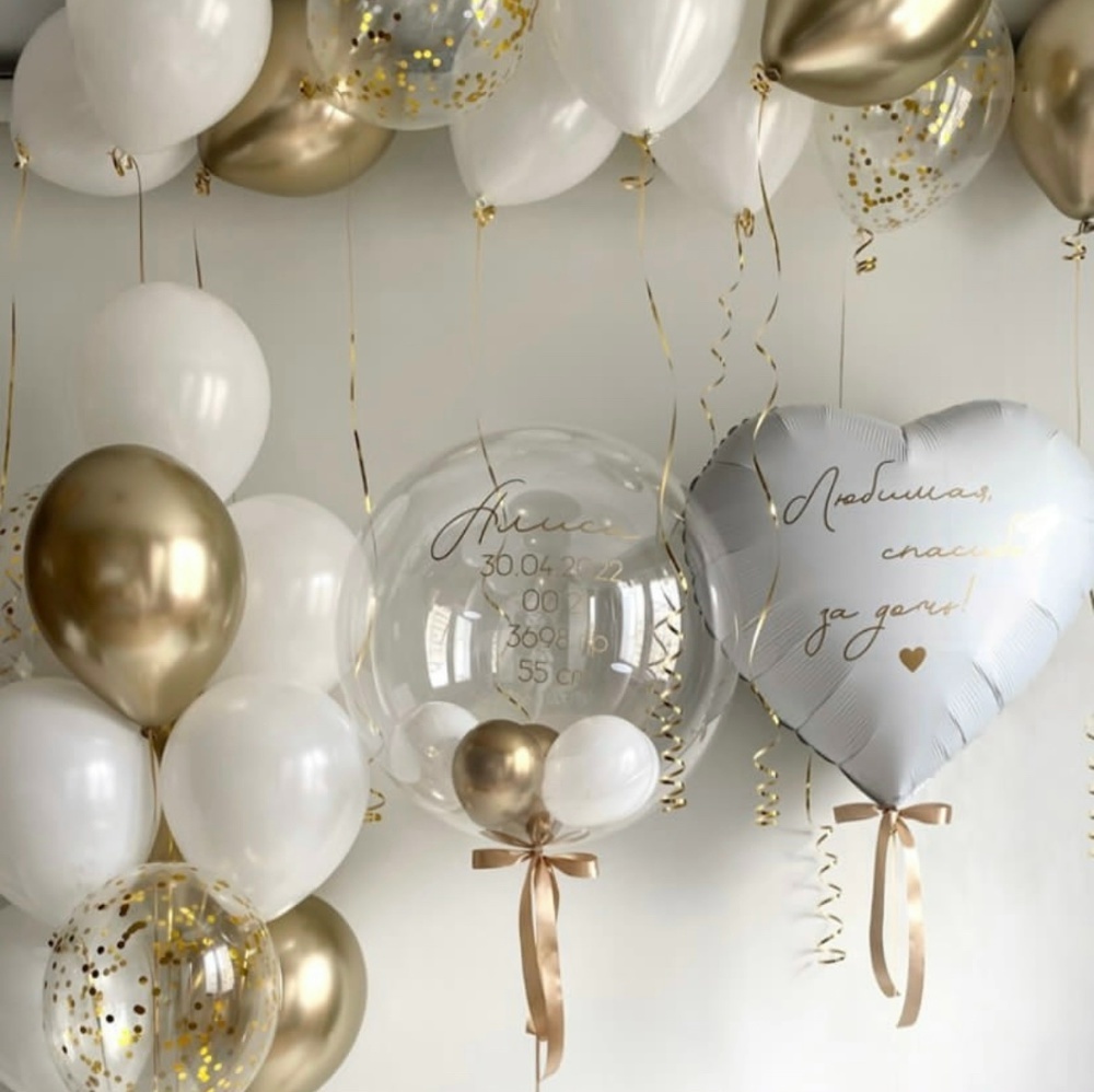 10 Шаров в потолок (5 белых, 2 с конфетти, 3 золотых)