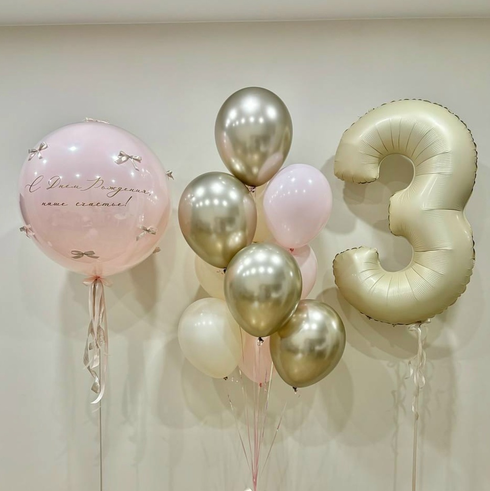 в набор входит: Связка из 10 шаров, Шар гигант зеркальный с бантиками цифра ( на выбор)
