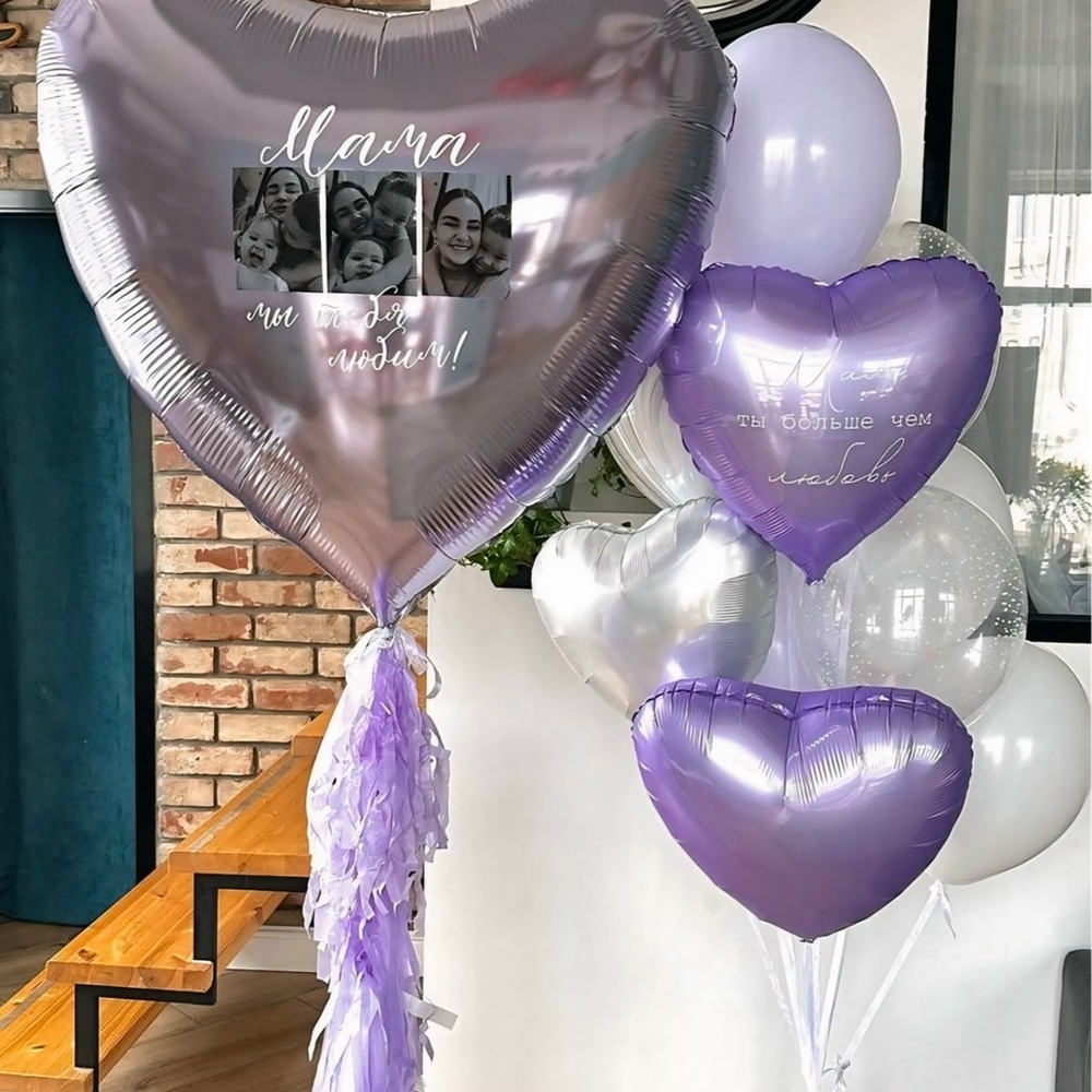В набор входит: Связка из 10 шаров Сердце большое с вашими фото и пушистой кисточкой