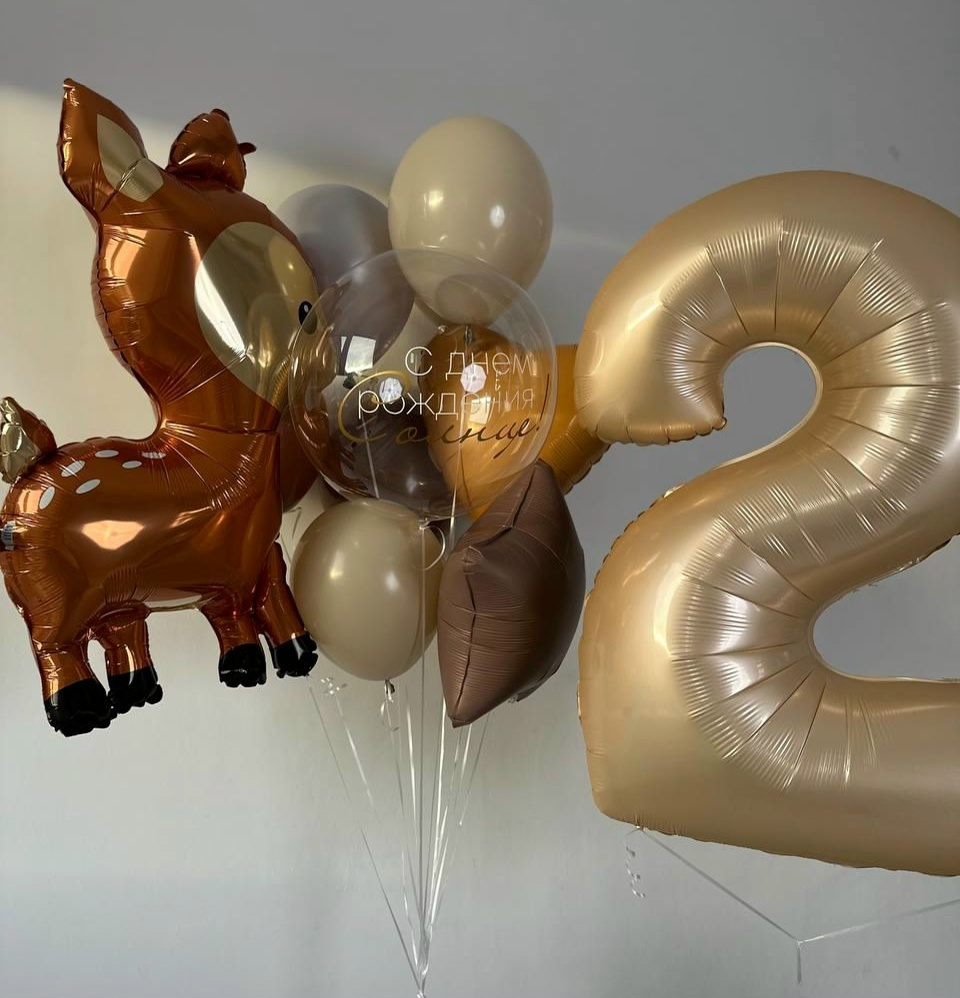 В набор входит: Связка из 8 Шаров и баблс шара Фигура Олененка Цифра (на выбор)