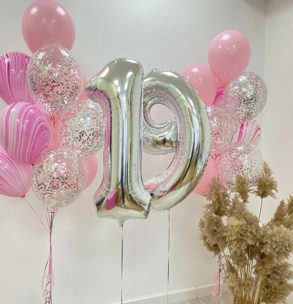 В набор входит: 2 связки из 10 Шаров как на фото Цифры ( на выбор)