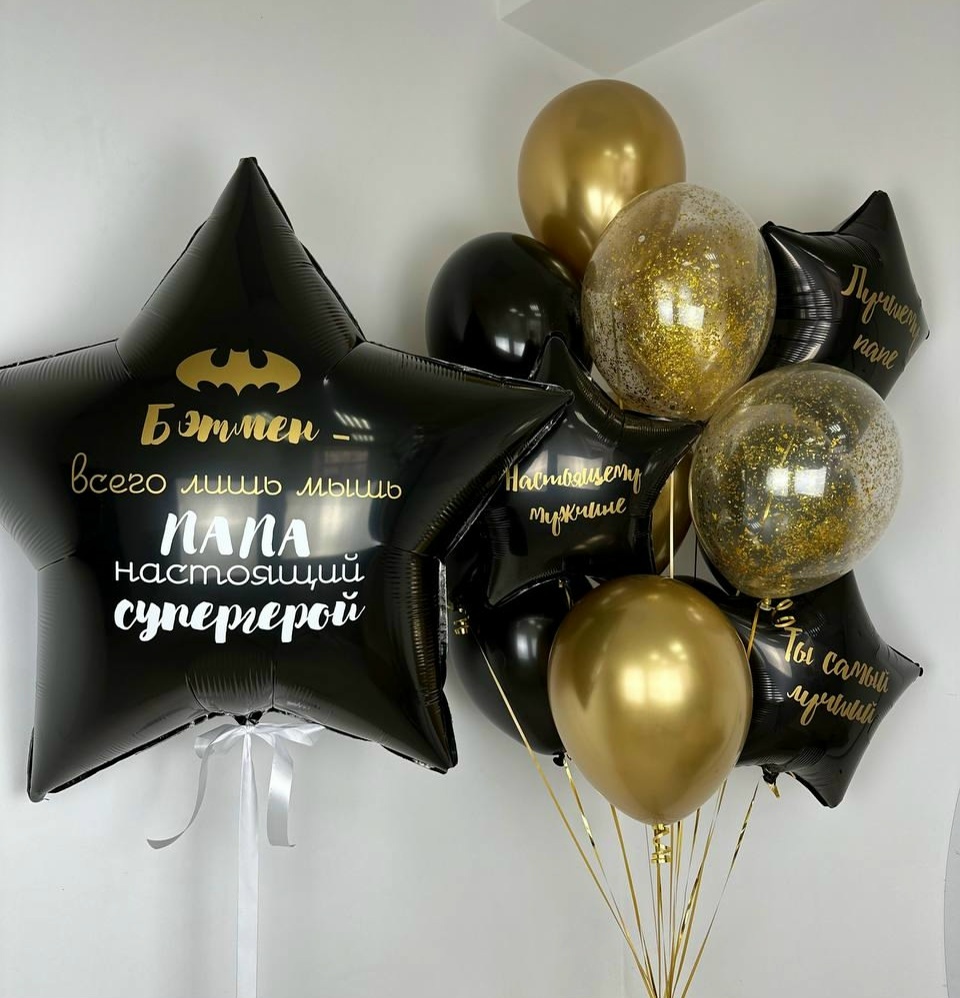 В набор входит: Связка из 11 Шаров и 3 звезд с надписями Звезда большая с нажписью