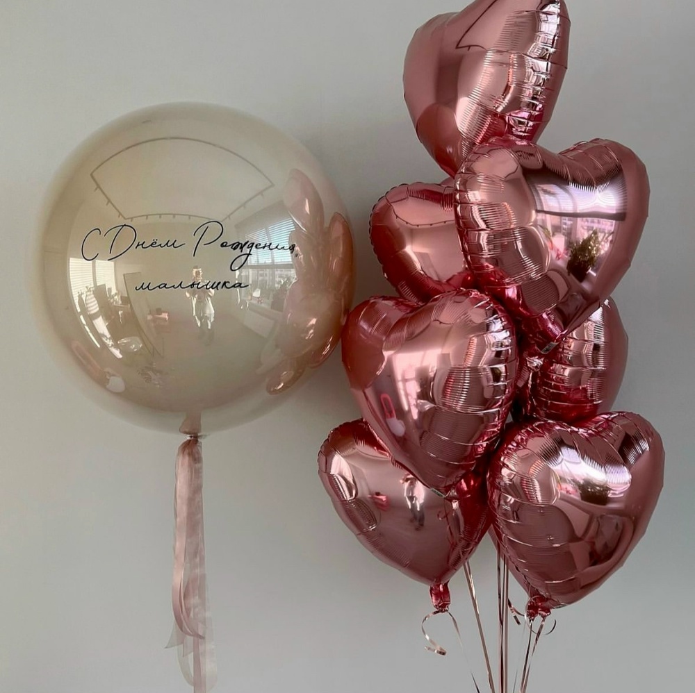 Связка из 8 сердец Большой зеркальный шар с надписью