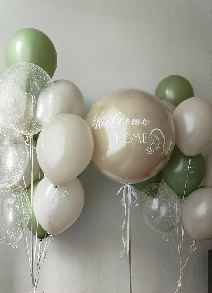 2 связки: 4 шара эвкалипт 5 шаров белый песок 3 шара с конфетти Большой зеркальный шар с надписью