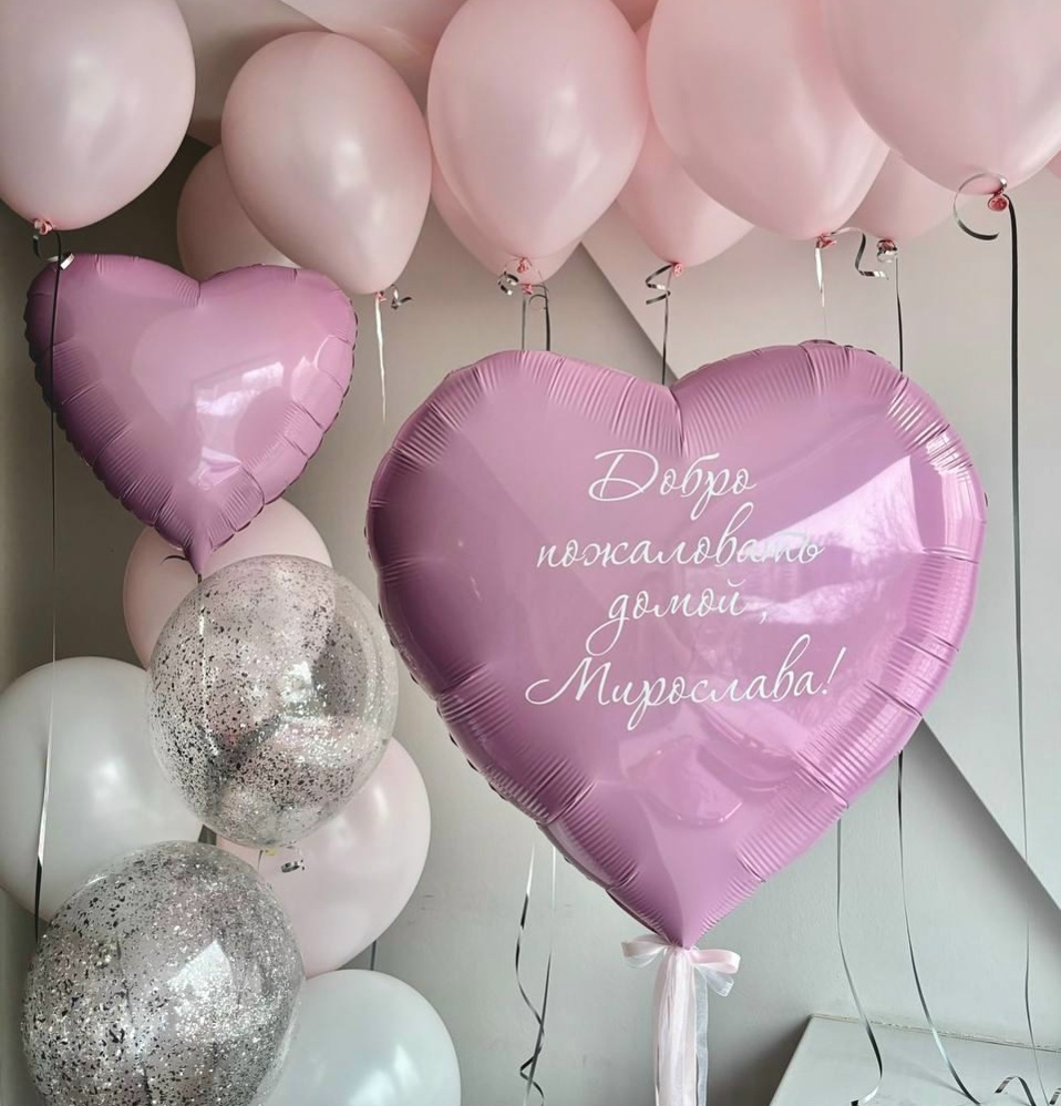 Связка: 3 розовых шара 2 белых шара 2 шара с конфетти Сердце розовое Большое сердце розовое с надписью 10 розовых шаров в потолок