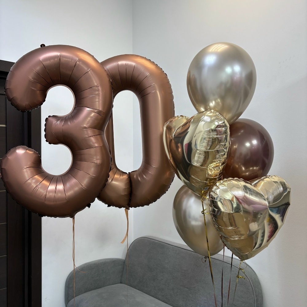 Связка: 2 шара Шампань хром 1 шар трюфель хром 2 сердца шампань