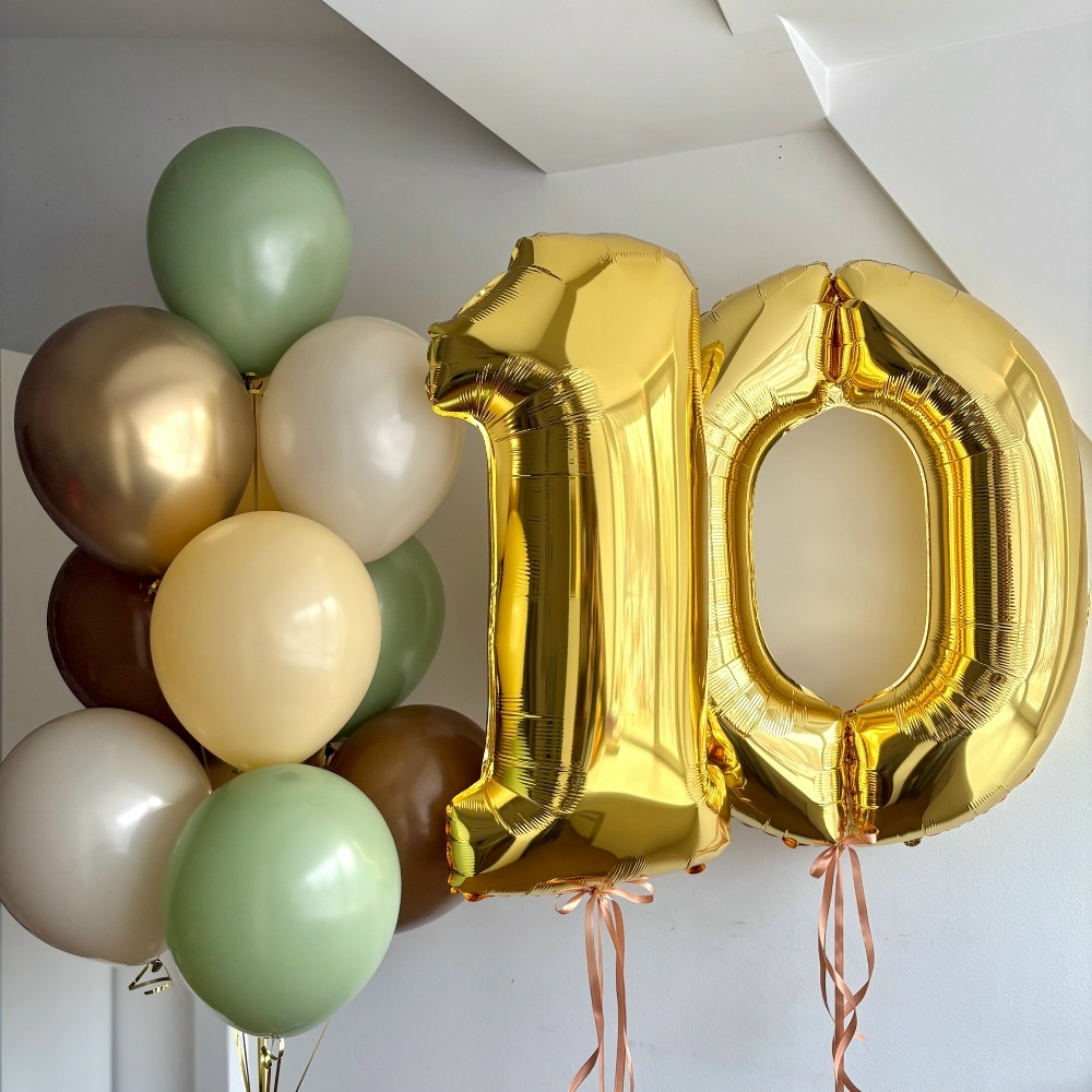 Связка: 3 шара эвкалипт 2 шара белый песок 2 шара персиковый 2 шара коричневый 2 шара хром золото 2 Цифры (на выбор)