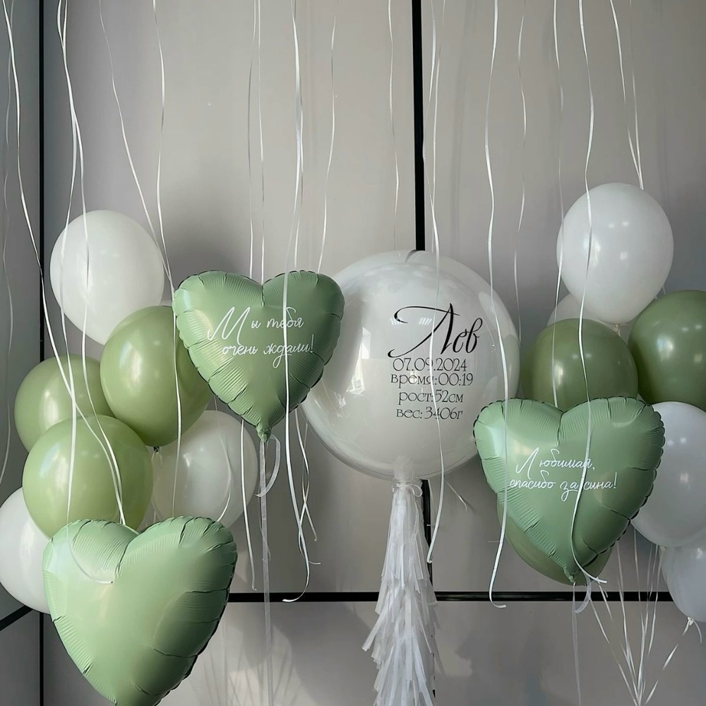 10 Шаров в потолок (5 эвкалипт, 5 белых)