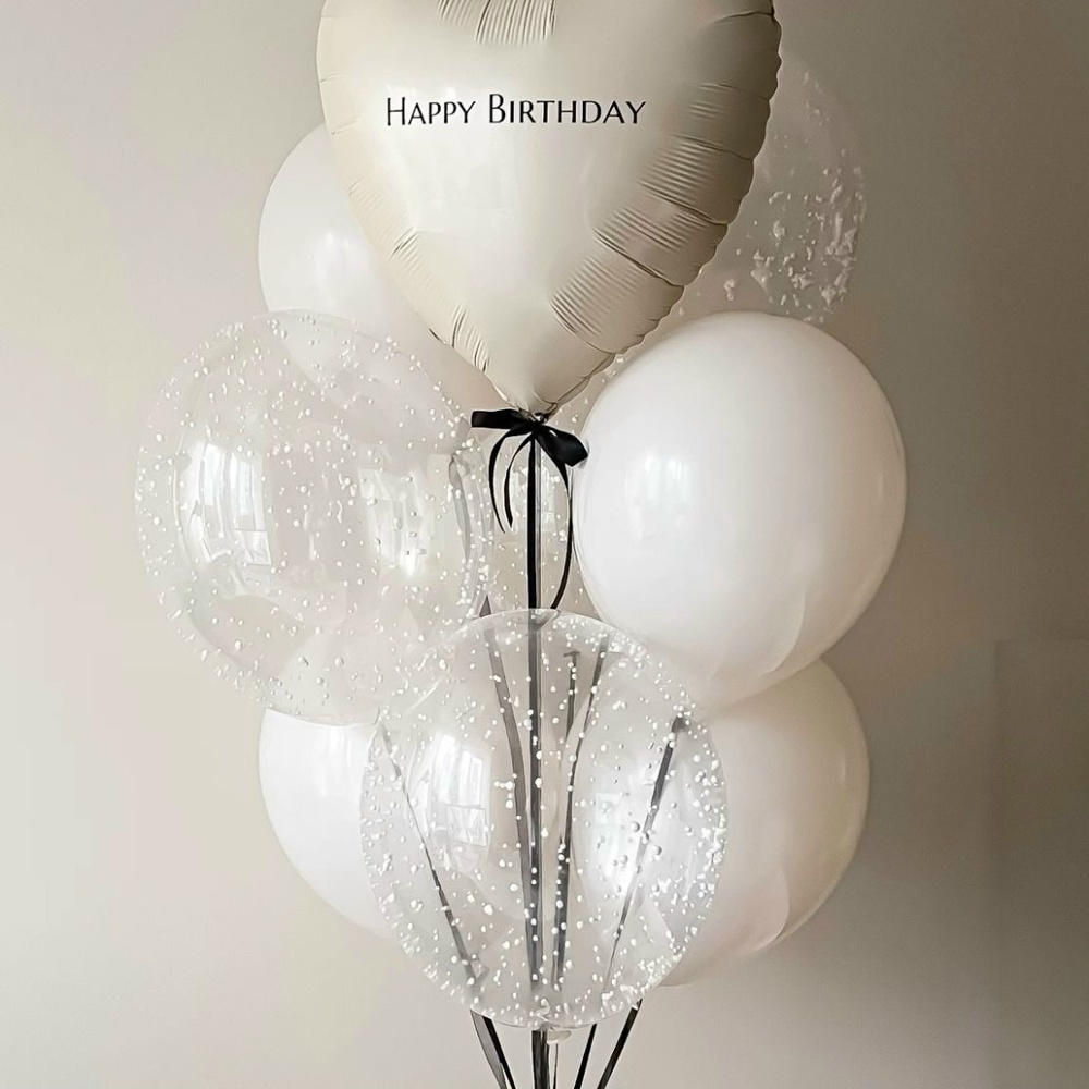 Связка: 5 кремовых шаров 4 шара с конфетти пенопласт 1 сердце кремовое с надписью