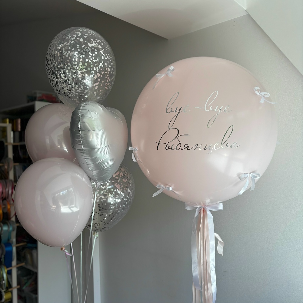 Связка: 2 двойных розовых шара 2 шара с конфетти 1 сердце Большой шар на девичник с новой фамилией внутри и бантиками