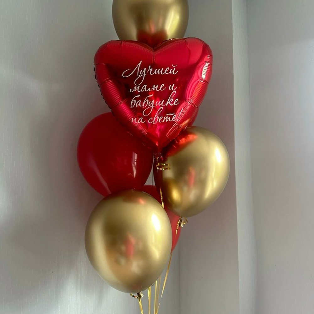 Связка: 3 красных шара 3 золотых шара 1 сердце с надписью