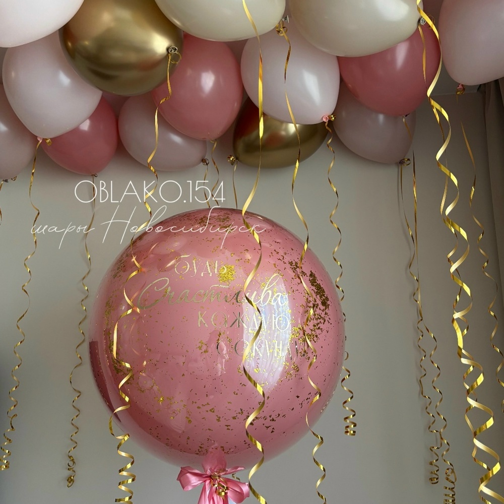 20 Шаров в потолок (4 золотых, 4 пыльная Роза, 4 нежно розовые, 4 белый песок, 4 розовое дерево) Шар гигант стеклянный с надписью и конфетти