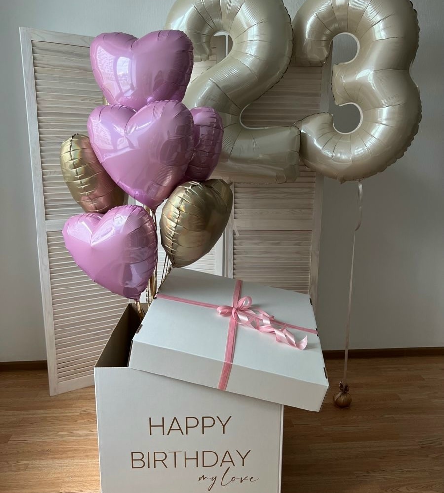 7 сердец 2 цифры ( на выбор) Коробка сюрприз с надписью