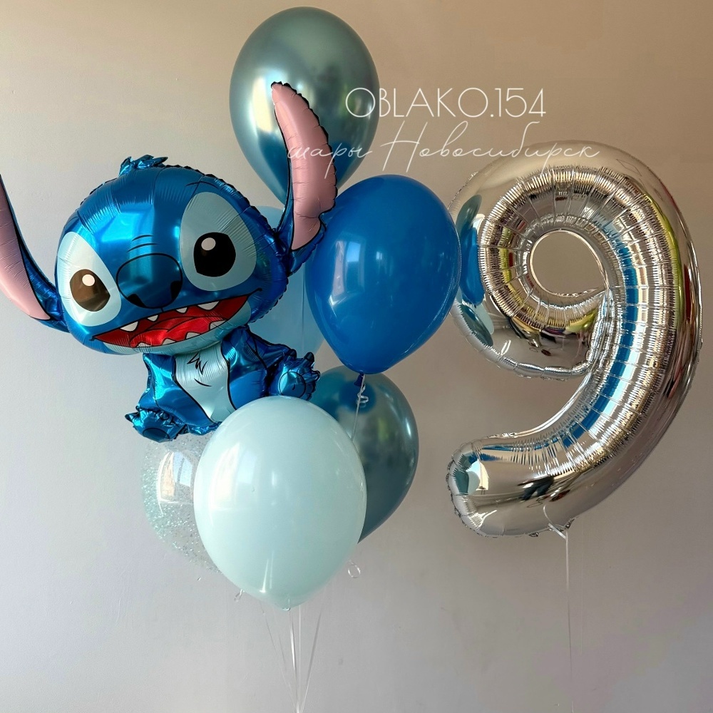 Связка: 2 голубых шара 1 синий шар 1 хром синих шара 1 шар с конфетти Цифра (на выбор)