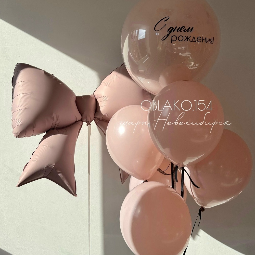 Связка из 6 Шаров и зеркального шара 45см с надписью Фигура бант