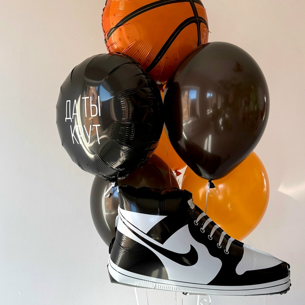 Связка из 2 оранжевых шара 2 черных шара Шар баскетбольный мяч Круг черный с надписью Фигура кроссовок