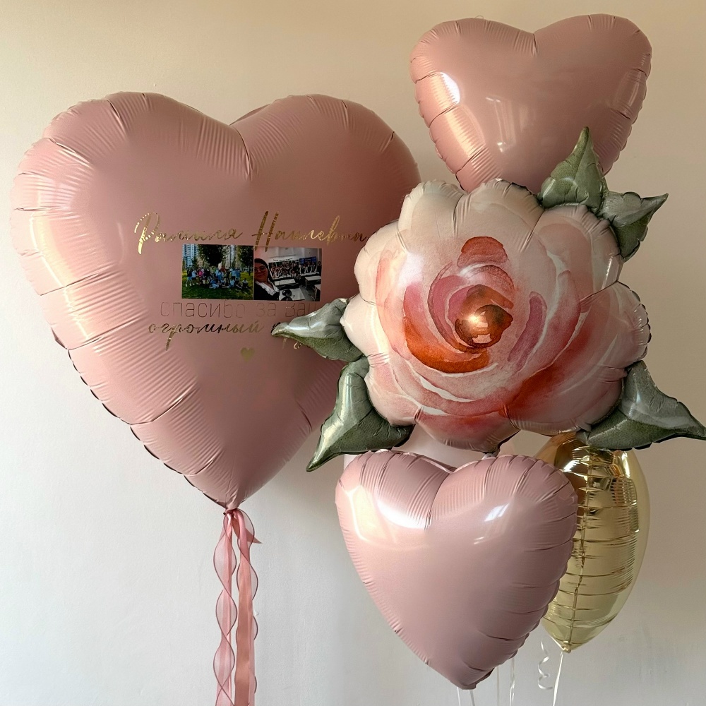 Связка из: 3 сердца 2 шара Фигура Роза Большое сердце с надписью и фото