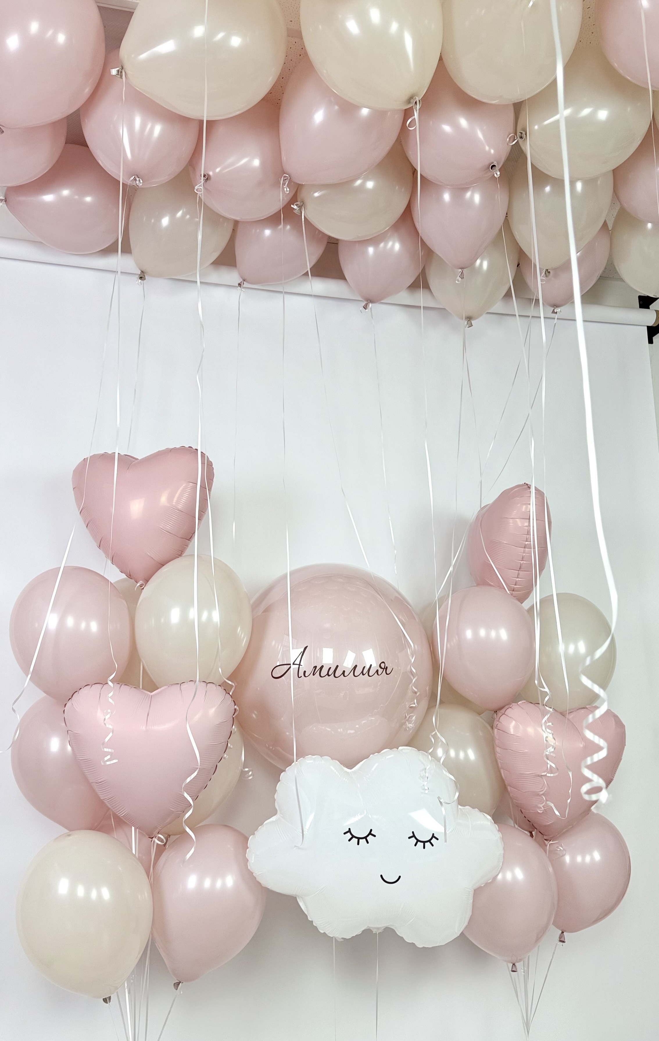 25 Шаров в потолок, 2 связки по 10 Шаров, большой зеркальный шар и фигура облако