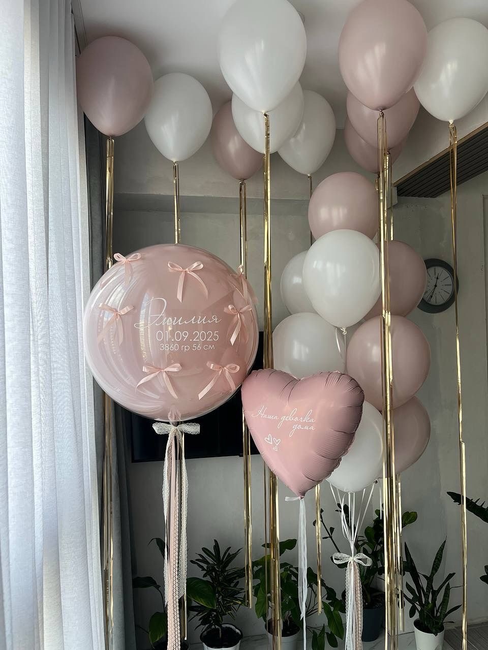Связка из 10 Шаров, 10 Шаров в потолок на дождике, большой зеркальный шар с бантиками, сердце с нажписью